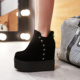 欧美秋冬季铆钉短靴厚底松糕女鞋内增高马丁靴坡跟超高跟短筒女靴