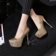 性感欧美风恨天高夜店单鞋防水台亮片细跟超高跟女鞋红色金色婚鞋
