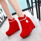 秋冬新娘鞋红鞋水钻结婚鞋坡跟短靴超高跟马丁靴女鞋磨砂短筒女靴