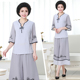 希奴夫人妈妈装民族风套装女2017新款夏装时尚短袖棉麻百搭两件套