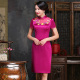 手工刺绣绣花加厚短款桑蚕丝真丝旗袍高档女连衣裙2017春夏新款