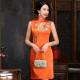 高档手工刺绣桑蚕丝真丝改良旗袍妈妈民族风短连衣裙2017春夏新款
