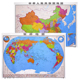 中国地图中文 世界中文地图1.1米X0.8米套装贴图2张 双面覆膜中学生地理学习厅办公室中文版高清防水成都地图出版社直供