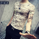 秋冬个性印花V领花T恤男士长袖体恤青年韩版修身T打底衫男衣服潮