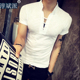 夏季中国风花体恤男V领修身半截袖衣服男潮流印花短袖T恤男韩版