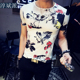 夏季印花短袖男潮修身花衣服短袖T恤男圆领半截袖男T恤潮流体恤男