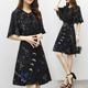2017新款女装夏修身中长款连衣裙女荷叶边刺绣雪纺短袖印花裙套装