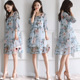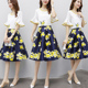 名媛2017新款女装夏装宽松连衣裙中裙女雪纺印花灯笼袖中袖裙套装