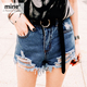 新款春夏女装破洞牛仔裤女短裤高腰修身毛边热裤韩版
