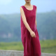 寺山文也 酒红色丝麻连衣裙中长款亚麻袍子长裙棉麻女装夏 向阳