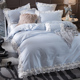 春夏款60s贡缎埃及棉床上四件套淡蓝 韩式公主风全棉蕾丝花朵被套