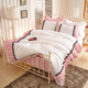 韩版纯色水洗棉四件套纯棉粉色公主风蕾丝边1.8m床上用品床单夏天