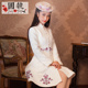 固执倾世如歌2017春新款复古气质立领中袖连衣裙蕾丝花边长裙