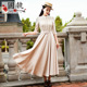 固执2017春季新款复古文艺学院假两件套无袖修身大摆连衣裙