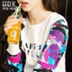 伊菲尚成连帽卫衣女宽松春秋季新款纯棉长袖印花休闲针织外套开衫