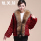 魅美娇整皮真兔毛皮草外套短款长袖狐狸毛领大码中老年妈妈款女装