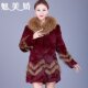 魅美娇整皮兔毛皮草外套中长款松紧长袖狐狸毛领海宁清仓特价女装
