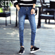 春秋季日系英伦时尚百搭型男小脚修身牛仔裤韩版男士百搭长裤子潮