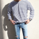 小呆家 MCC秋新款!男海魂条纹男长袖t恤 文艺港风男T恤 ifashion
