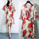 2017夏季波西米亚开叉V领印花雪纺连衣裙收腰系带大摆沙滩长裙女
