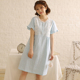 抹茶小蓝睡衣女夏天睡裙纯棉短袖薄款日系奢华蕾丝宽松少女家居裙