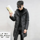 2016冬季男士中长款棉衣外套潮韩版加厚修身长款棉服青年连帽棉袄