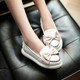 55元包邮春鞋秋女单鞋蝴蝶结亮皮镂空坡跟鞋女白色女式皮鞋/现货