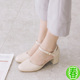 2017春夏新款女单鞋韩版浅口扣带女式皮鞋裸色软面皮中粗跟淑女鞋