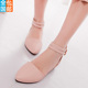 暴款包邮春夏韩版少女凉鞋双扣带皮面公主鞋裸色尖头包头平底凉鞋