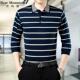 秋季中年男士长袖t恤衫薄款中老年男装翻领大码打底衫条纹爸爸装