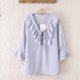 2017加肥加大春季新款韩版雪纺喇叭袖V领衬衫胖mm打底衫上衣T恤女