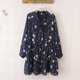 2017春季新款韩版碎花雪纺连衣裙蝴蝶领胖mm收腰显瘦连衣裙上衣女