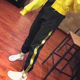 欧洲站春夏女装黄色字母条休闲运动裤新款大裆裤小脚裤韩范哈伦裤