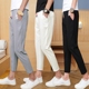 夏季男士亚麻裤薄款九分裤韩版修身小脚休闲9分裤棉麻潮流男裤子