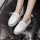 松糕鞋女春秋2017新款厚底圆头单鞋韩版百搭乐福鞋系帶平底小白鞋