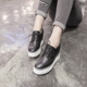 内增高女鞋2017厚底松糕鞋女春秋新款欧美坡跟单鞋真皮系带小白鞋
