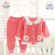 宝宝2017春款新生儿毛衣毛线衣纯棉女童婴儿针织开衫全棉纱衣套装