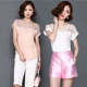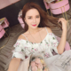 凶猛熊猫 韩版夏季新款V领五分袖碎花雪纺衫女露肩吊带荷叶边上衣