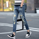 破洞九分牛仔裤男士2017夏季新款韩版潮流八分8小脚修身9分男裤子