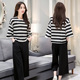 2016新款女装春装潮两件套韩版宽松条纹上衣阔腿裤休闲时尚套装女