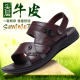 2017新款真皮凉鞋男牛皮沙滩鞋男士休闲凉鞋拖鞋两用父亲凉鞋男