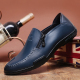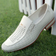 2017新款米白色皮鞋男真皮镂空凉鞋透气打孔中老年商务休闲男鞋
