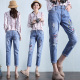 春夏季新款宽松破洞牛仔裤女9分裤子刺绣裤卡通哈伦裤直筒乞丐裤
