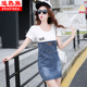 牛仔背带裙女2017新款韩版贴布破洞牛仔连衣裙潮宽松显瘦直筒裙春