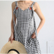 inso ap 自制 法式复古 清新小格子铆钉修身背带连衣裙 2017夏