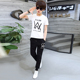 2017男夏季新款短袖T恤套装圆领短T长裤两件套男学生休闲运动套装