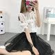 时尚新品夏季纯色系带V领清新雪纺衫欧根纱蓬蓬裙网纱半身裙套装
