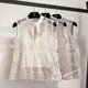 2017夏季新款韩版欧根纱绣花吊带无袖蕾丝衫两件套上衣女短款百搭