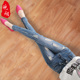 晚烟2017春新款 双层拼接裤脚修身破洞骷髅头 九分牛仔裤女小脚裤
