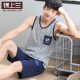 2017夏可外穿纯棉男士睡衣夏季休闲运动套装全棉家居服无袖背心
